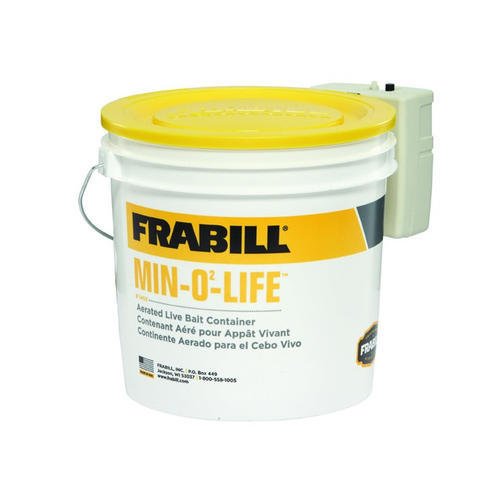 The Frabill 1405 Min-O-Life Aerated Bucket includes a Frabill 1423 Aerator, with Whisper Quiet operation that includes aerator hose and stone (runs on 2-D size batteries) and will clip to any bucket. The durable removable insulation liner keeps minnows cool and aerated with an 8 quart capacity.