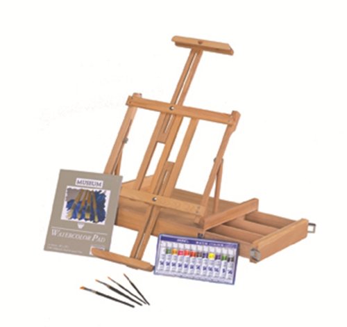 The Weber Van Dyck OIL Painting Kit includes, the incredible Van Dyck easel, made of beautiful elm, and a unique design that allows the user to bring the artwork below the table surface, to avoid standing to reach the top of the canvas. The easel is also equipped with a drawer with compartments for all materials. Plus 12-tubes of oil Colors, 3each of 9-inch by 12-inch canvas panels, and 4 assorted Taklon artist brushes, all in a full color box. (Shown with WC accessories).